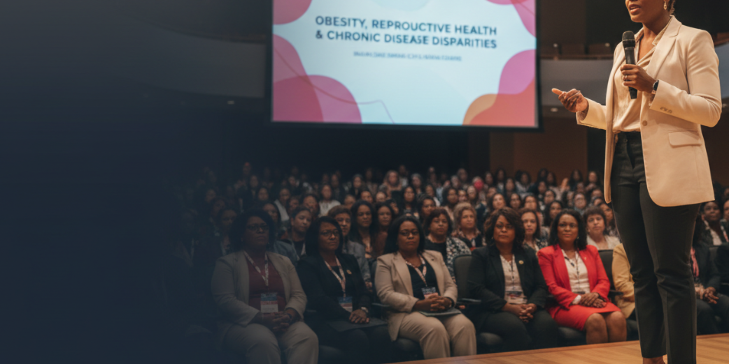 Keynotes, panel discussions, grand rounds, and educational seminars addressing obesity, reproductive health, PCOS, and chronic disease disparities affecting women.